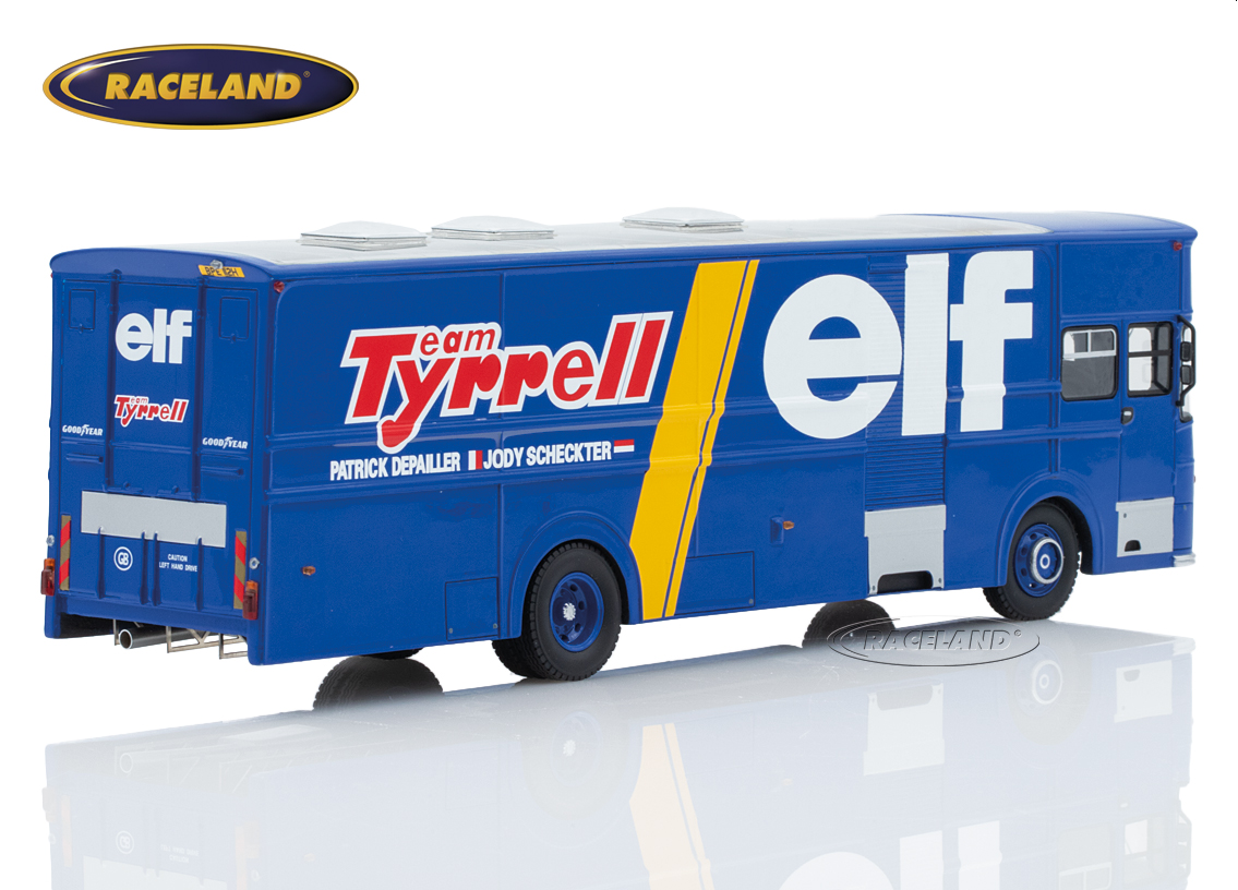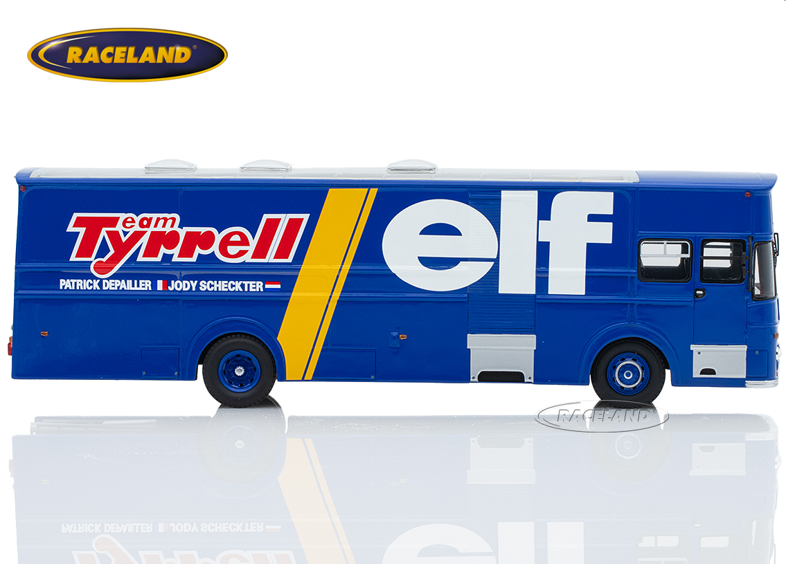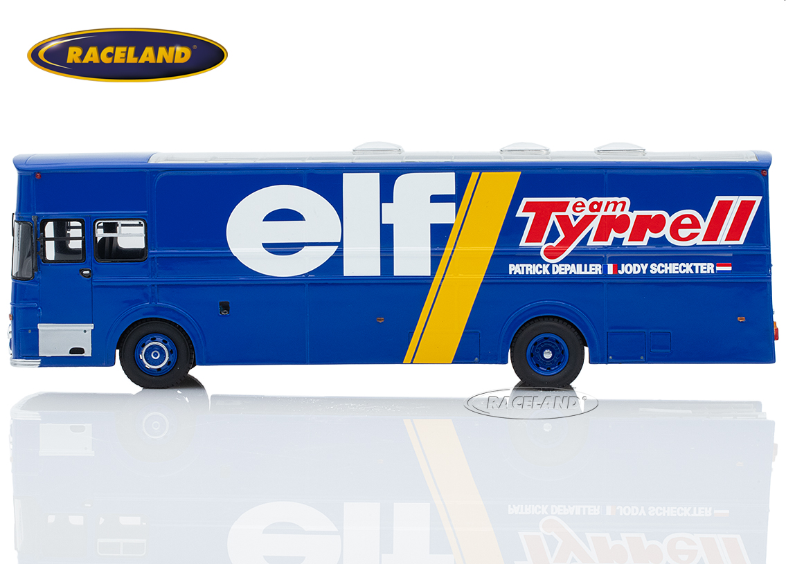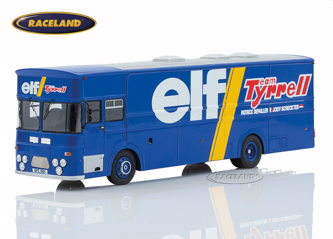 In the 1950s and early 1960s, the Formula 1 World Championship mainly consisted of up to eight rounds within Europe. The works teams brought their racing cars to the circuits in large open car transporters, while private drivers such as Joakim Bonnier mainly towed their single seaters across Europe on a trailer behind a normal station wagon. Before the large articulated trucks found their way into the F1 paddocks in the 1980s, many teams had special bodies built in the 1970s, which were mostly based on well-known bus chassis. Ken Tyrrell for example chose British Leyland Leopard buses as a basis for transporting his 6-wheel Tyrrells in 1976 and 1977.