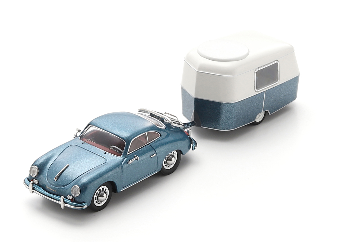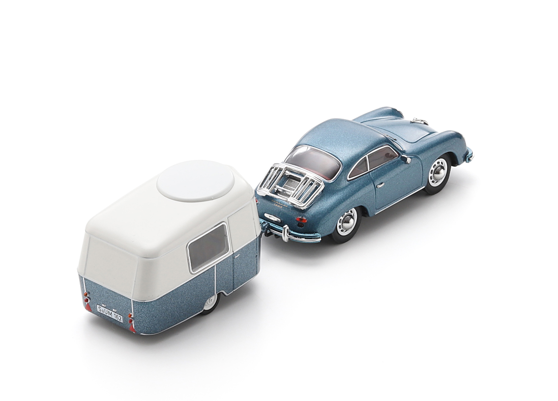 Porsche 356 Coupe mit Eriba Puck Anhänger 1955 - blau metallic