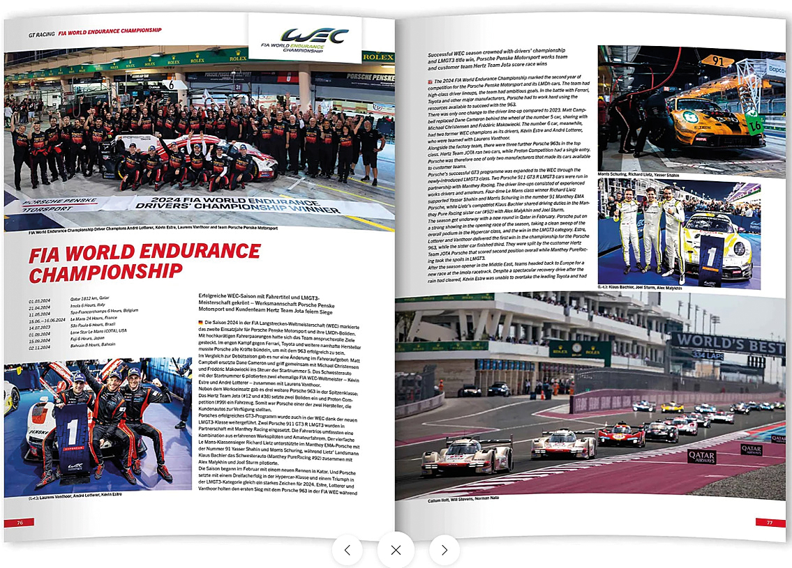 Das offizielle Jahrbuch zum Thema Porsche Motorsport weltweit mit den Langstrecken-Rennen in Le Mans, Spa, Nürburgring, Daytona oder Dubai. Dazu alle internationalen Sportwagen-Meisterschaften und Carrera Cups.